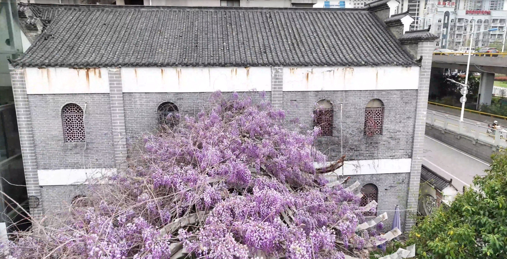 据了解,这棵紫藤栽种于上个世纪初,距今已百年树龄,虽然宝兴面粉厂的辉煌一去不再,但这棵百年紫藤年年开花,保住蚌埠人回忆那段工业繁荣的岁月。