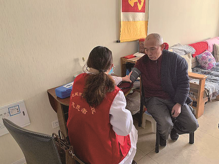 讲座结束后还开展了义诊活动,免费为老年人测量血压等检查。