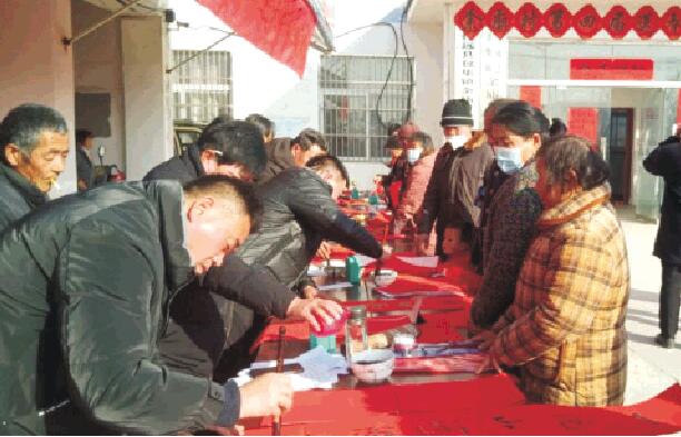 书法爱好者写春联送福
