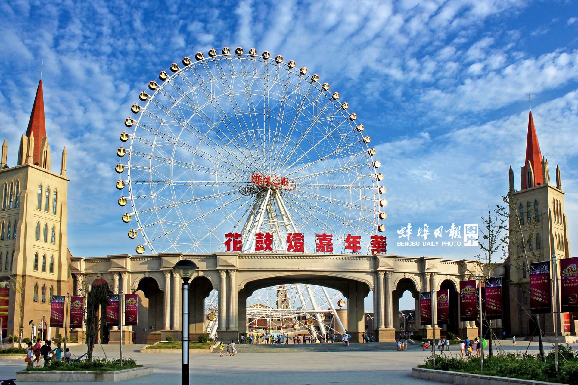 淮河北岸圈堤下的绿化与周边城市建筑完美融合