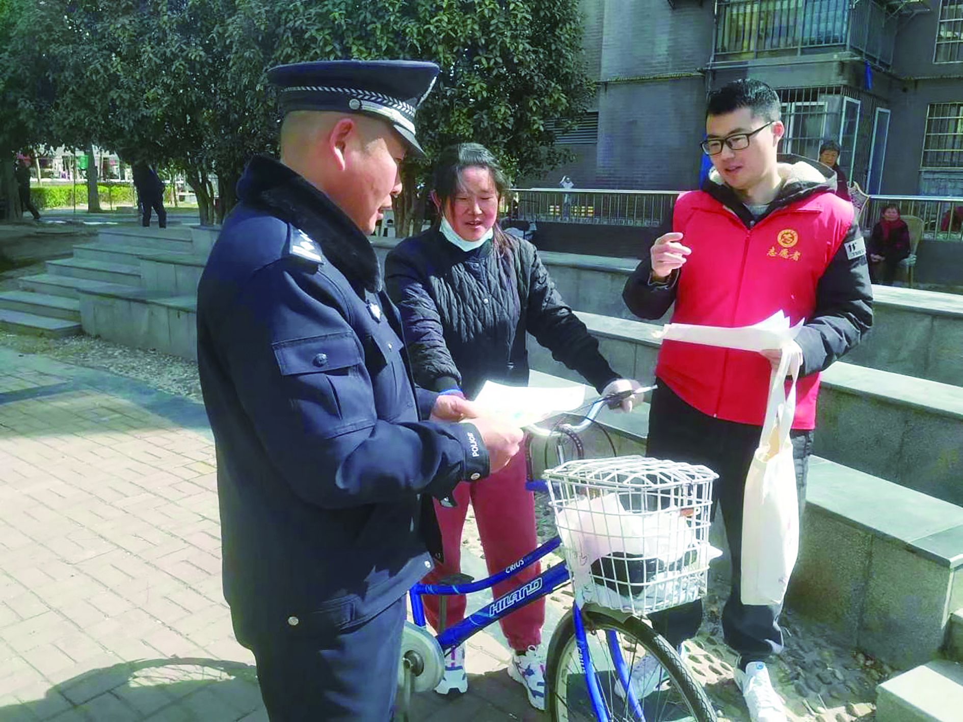 民警、党员志愿者开展反诈宣传