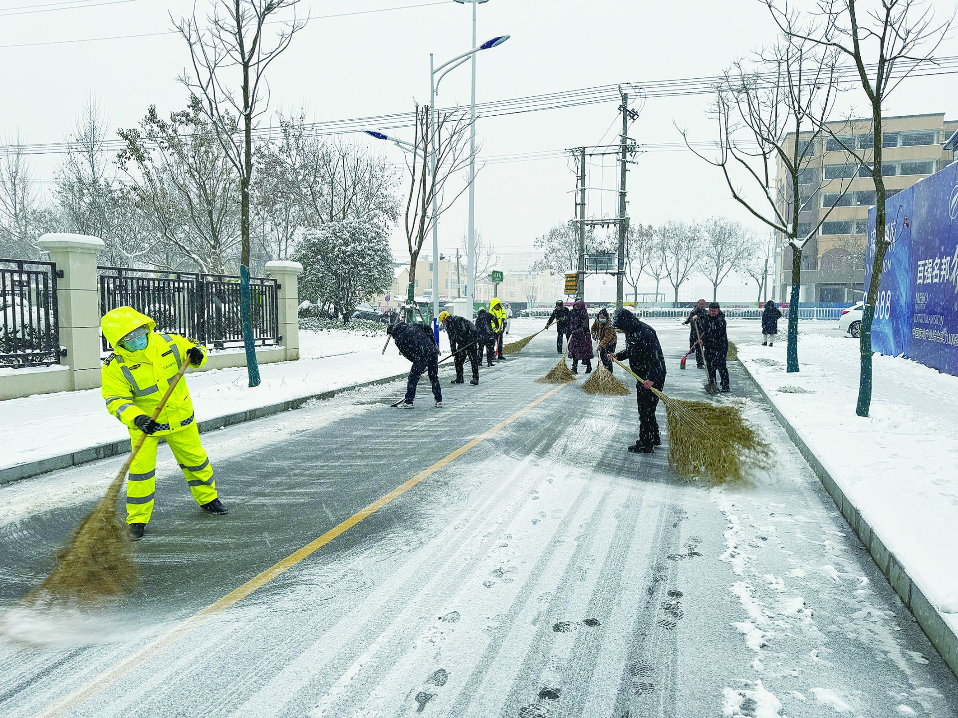 固镇县交通运输综合行政执法大队组织全体执法人员冒着风雪前往积雪路段进行清扫工作