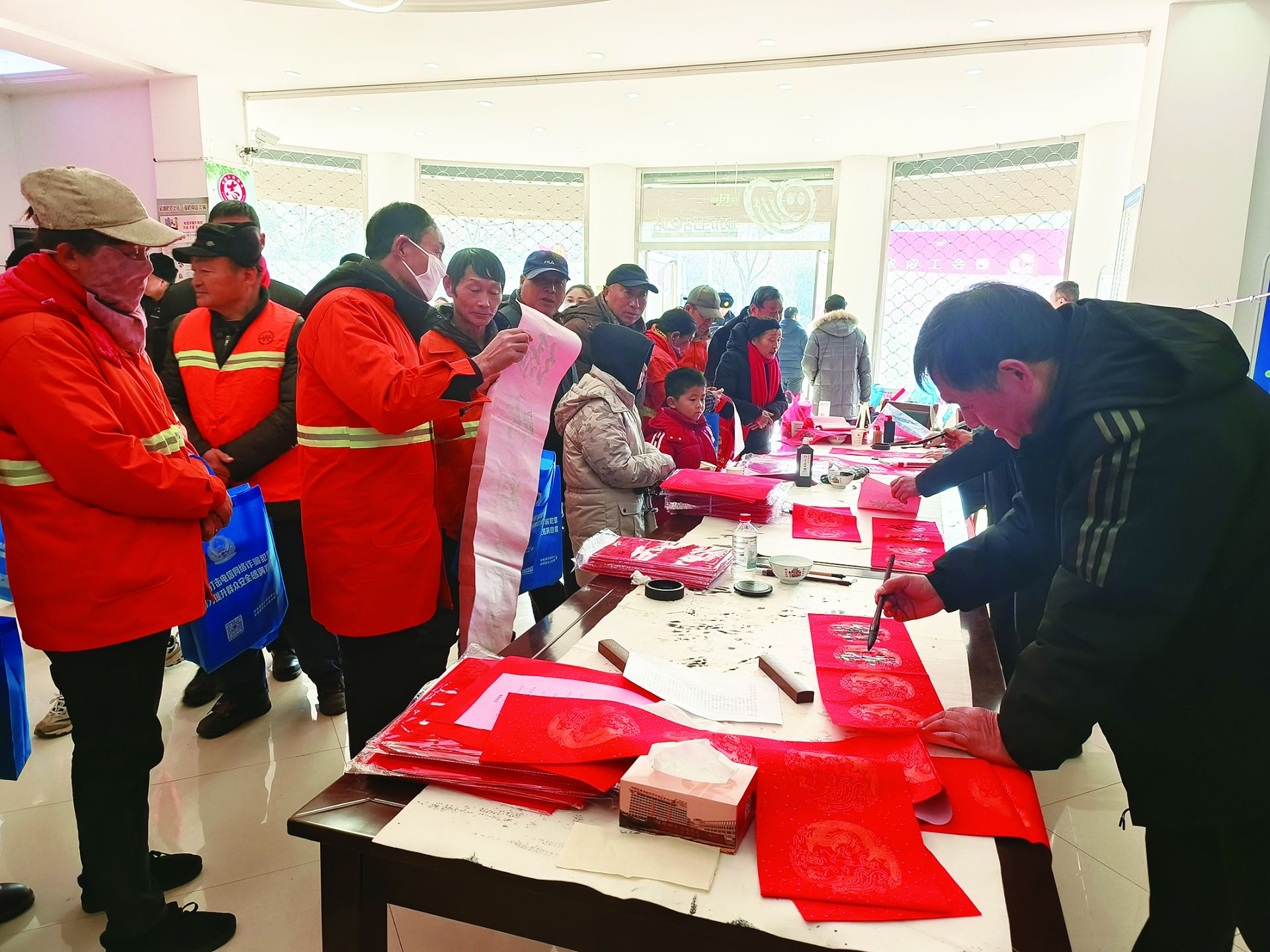 淮上区小蚌埠镇果园社区开展赏年画过大年——墨香肆意迎新年 义写春联送祝福活动。