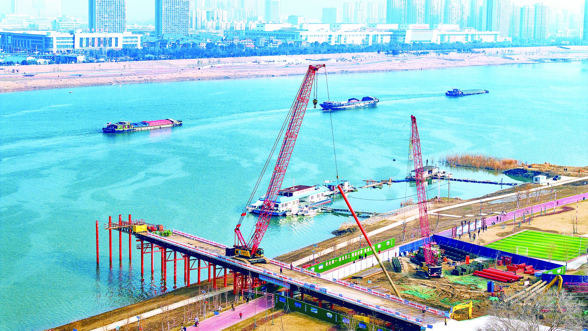 1月12日,淮河北岸延安路淮河大桥及接线工程首桩(试验桩)开钻。