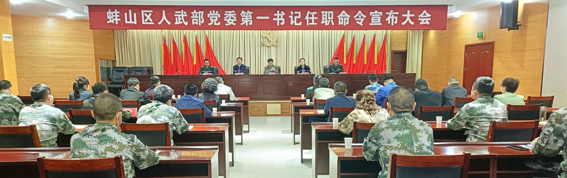 蚌埠新闻网讯 4月26日上午,蚌山区人武部党委第一书记任职命令宣布大会召开,蚌埠军分区政委徐业胜宣读蚌山区委书记桑延慧担任蚌山区人武部党委委员、第一书记的决定,并颁发任职通知书。区人武部刘跃政委主持会议,区委办、政府办、各乡街党工委书记及专武干部、人武部全体干部职工参加会议。