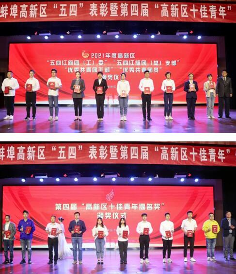 颁奖大会在激昂的国歌声中拉开帷幕。区团工委负责同志宣读了表彰文件,出席会议的领导依次为2021年度高新区“五四红旗团委”“五四红旗团支部”“优秀共青团干部”“优秀共青团员”代表、第四届“高新区十佳青年提名奖”和第四届“高新区十佳青年”颁奖。