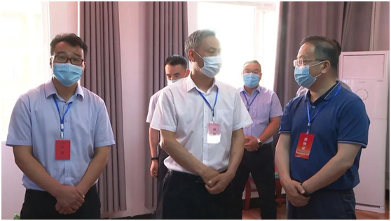 沈明举一行先后来到固镇一中、县实验中学、固镇二中三个考点,实地查看各考点的环境秩序、常态化疫情防控措施落实情况等,通过监控平台视察考场秩序和考风考纪,并慰问现场考务工作者。