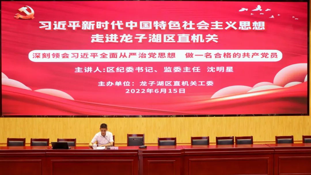 会后,龙子湖机关党建先锋大讲堂”(第二季)开讲。本季的主题是“习近平新时代中国特色社会主义思想进机关”,邀请区纪委书记、监委主任沈明星上党课。沈书记以《深刻领会习近平全面从严治党思想,做一名合格的共产党员》为题,带领现场党员深入学习“全面从严治党永远在路上”等重大政治论断,弄懂全面从严治党的新要求,做实党风廉政建设和反腐败斗争的各项工作。