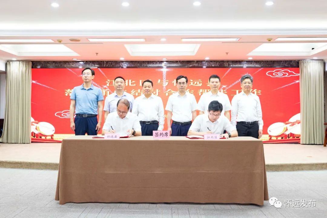 会上,县委常委、常务副县长解义平与江北区委常委、常务副区长吴耀明分别代表两地政府签订了《江北区与怀远县落实甬蚌结对合作帮扶框架协议》。