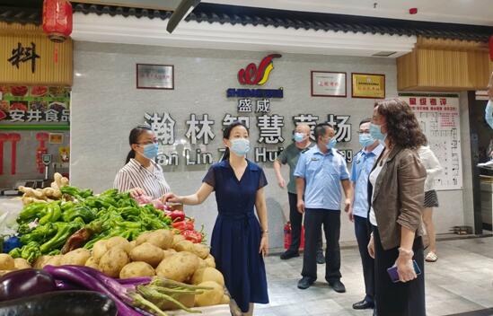在瀚林智慧农贸市场,桑延慧重点对市场日常管理、疫情防控、消防安全等情况进行检查。她强调,农贸市场是重要的公共基础设施,是反映城市文明形象的重要窗口。相关部门、乡街(社区中心)要对照创建标准,加强市场及周边环境整治,强化内部管理,为市民营造放心、安心、舒心的购物环境。