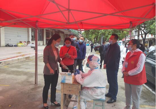 在龙湖新村区域核酸检测点,桑延慧一行查看了核酸采样场地设置、人员配备及疫情防控措施落实等情况,并与小区居民一起进行了核酸采样。在宜必思隔离点,她对工作人员围绕中心、服务大局,坚守岗位、不辱使命,表示感谢。她强调,全员核酸检测工作是疫情防控的重中之重,是防控措施中的必要之举,务必做到高标准、高质量,确保应检尽检,不漏一户、不落一人;隔离点是阻断疫情传播的关键一环和坚实屏障,必须坚持规范化管理,做好应对各种突发事件的应急准备。各级各部门要严防输入,扎实做好重点地区人员筛查处置工作,提高科学精准防控水平,坚决守牢疫情防控底线。