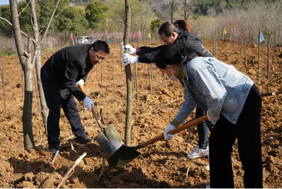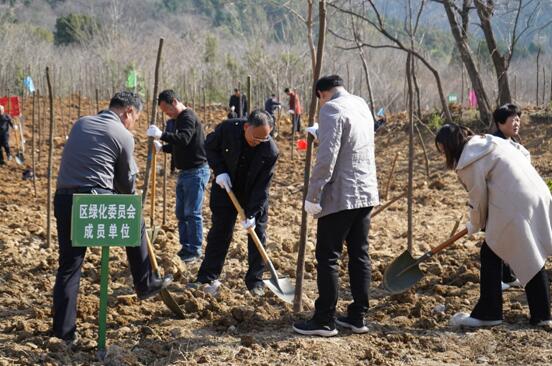 在位于涂山风景区的义务植树基地,现场一幅热火朝天的忙碌景象。区领导和干部职工挥锹铲土、扶直苗木、培实新土、提桶浇水,分工协作、相互配合,短短一个多小时就种下了约500棵香樟树,用实际行动践行了“绿水青山就是金山银山”的生态文明理念。