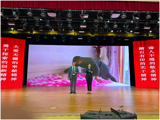 愿化春雨润桃李,讲述人褚集镇学区赵庄小学赵军、唐集镇学区中心幼儿园钱婉莹作为教育同仁代表详细讲解宋文武同志的先进事迹。讲述人谈到,主动资助学生是宋文武老师的寻常举止,直到他的突然离去,妻子在整理遗物时,这些事才“真相大白”:一些字母代号和捐出的钱数,并没有真正姓名的捐助对象。