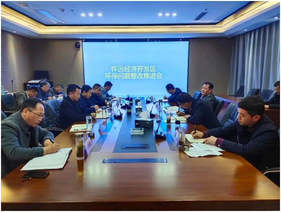 在怀远经济开发区环保问题整改推进会上,王庆武听取相关部门和各工作专班整改推进情况汇报。