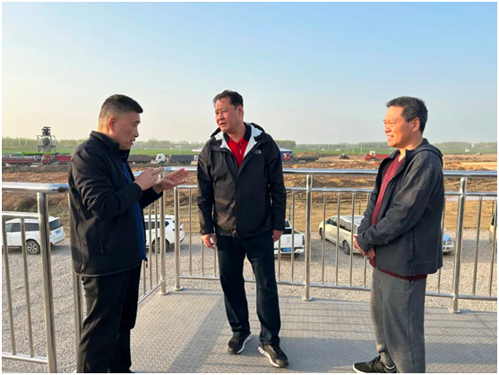 在蚌埠滕湖机场项目建设现场,王庆武与相关负责人深入交流,详细了解项目推进、施工组织等情况。