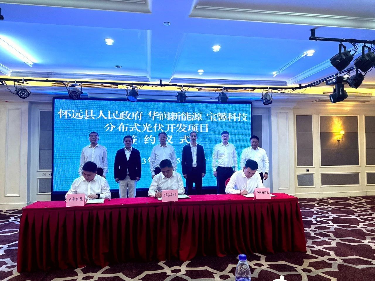 据了解,怀远县人民政府与华润新能源投资有限公司安徽分公司、江苏宝馨科技股份有限公司签订的分布式光伏开发项目总投资50亿元,计划分三期建设1GW整县分布式光伏,充分利用怀远县的绿电项目资源,加快清洁能源产业发展。