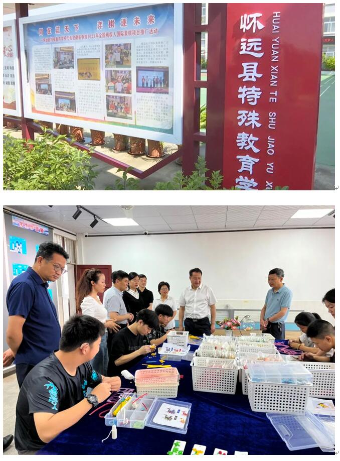 慰问中,王庆武一行首先来到怀远县特殊教育学校,听取学校负责人汇报了学校软硬件建设、特色教育创新及职业技能培养等情况,并参观了棋室、展室、乒乓球室等。学生们正在老师指导下,专心致志地进行技能培训。王庆武走进教室实地参观,为孩子们的作品点赞,并对在国内大赛上获得优异成绩的老师、同学表示充分肯定。