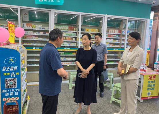 随后,桑延慧一行来到海王星辰健康药房文化广场二店,与企业负责人面对面交流,听取企业经营情况和发展规划介绍,询问企业存在的困难和问题。桑延慧希望企业严把药品采购关,守牢药品安全底线,为老百姓提供优质的产品和服务,打造知名连锁药店品牌,并积极发挥在药品零售端的运营优势,参与和助力蚌山健康医疗产业发展。