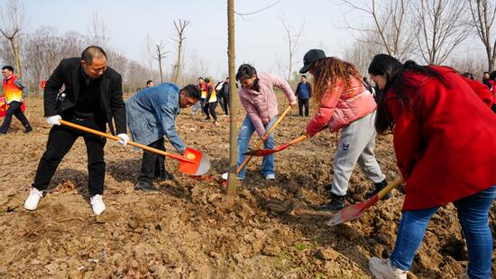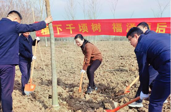 植树现场,大家三五成群、分工协作,挥锄挖土、扶苗填坑、浇水润根,一派热火朝天的劳动景象。经过一番辛勤劳作,一颗颗树苗被整齐栽种,在初春大地上呈现出蓬勃生机。