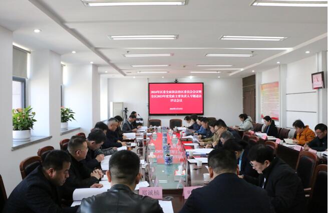 会议集中学习了《习近平法治思想纲要》,书面学习了安徽省委全面依法治省委员会第六次会议精神、市委全面依法治市委员会第七次会议精神;审议了《区委全面依法治区委员会组成人员调整建议名单》《区委全面依法治区委员会各协调小组组成人员调整建议名单》;开展了2023年度法治建设专题述职评议,46个党政机关主要负责人向区委依法治区委员会进行法治述职,其中8名乡镇、街道、部门党政主要负责人现场述法,并邀请部分人大代表、政协委员、党代表、群众代表等对述法情况进行了现场评议。