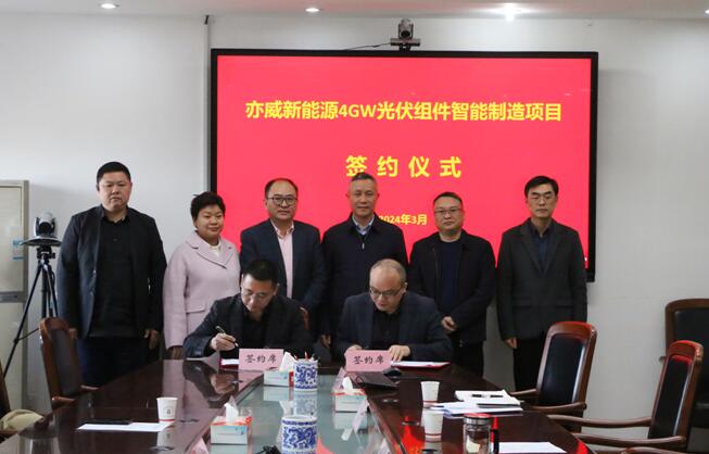 3月21日下午,禹会区政府与亦威新能源 (安徽) 有限公司签订总投资12.5亿元的4GW新能源光伏组件智能制造项目投资协议。区委书记王启卫,区委常委、副区长王宏洲等出席签约仪式。