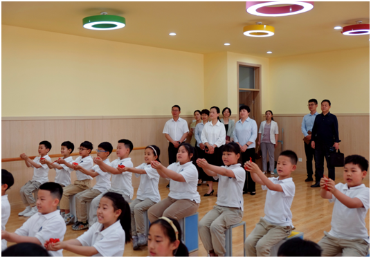 在水游城学校,桑延慧一行参观了解学校设施及办学特色,观摩了武术特色课程、踏板操社团活动、音乐活动课等特色活动,愉快地接受了孩子们佩戴的红领巾,并与孩子们互动交流。桑延慧还驻足欣赏了学校荣誉墙,鼓励学校继续坚持素质教育和办学特色,不断提高教育教学质量,促进学生德智体美劳全面发展。