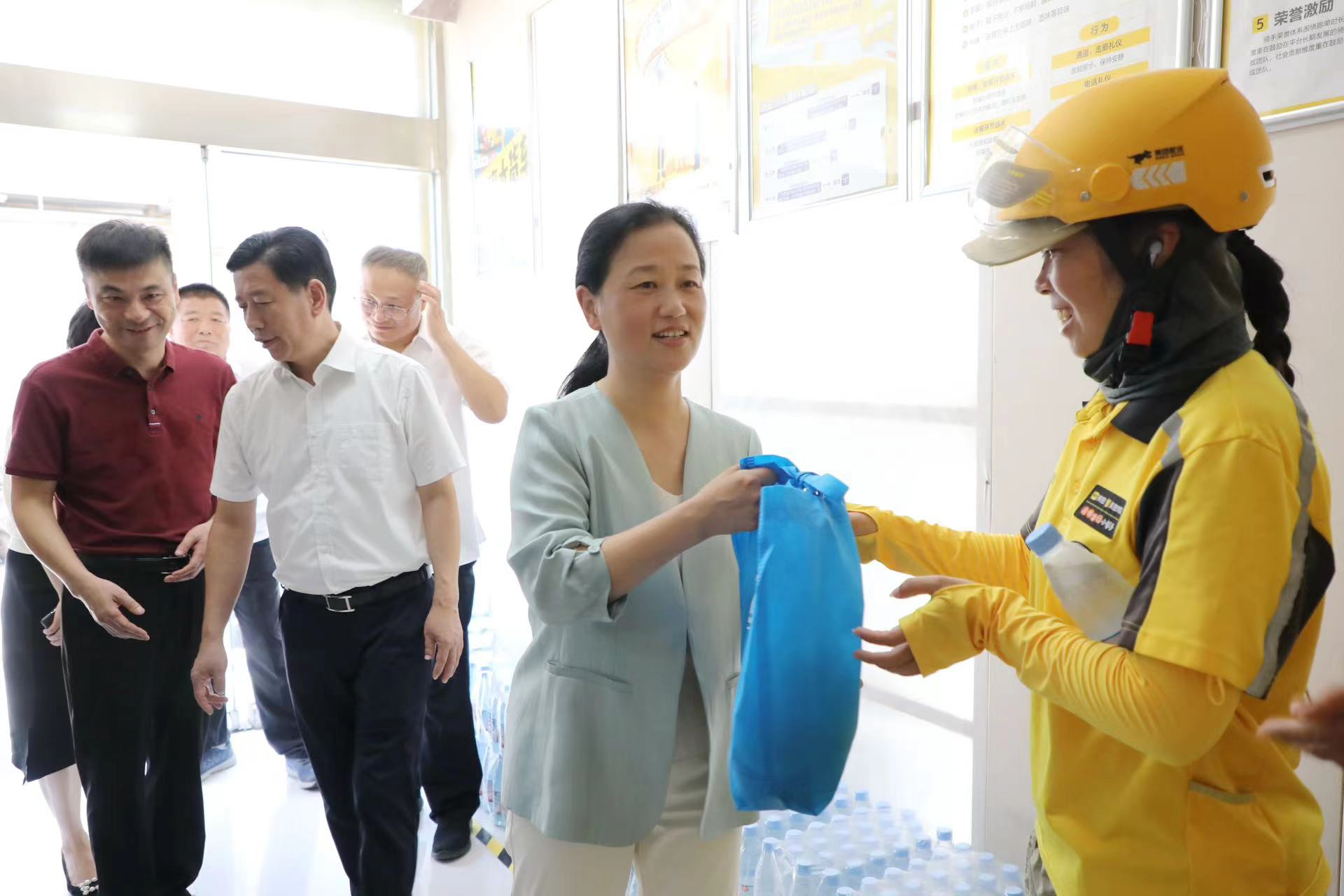 蚌埠发布客户端讯 7月31日上午,区委书记桑延慧带队开展夏季“送清凉”慰问活动,看望慰问在高温下坚守工作岗位的环卫工人、外卖骑手、农村老党员及村“两委”等一线工作者,并送去清凉解暑物资,代表区四套班子对他们的贡献和付出致以崇高敬意和衷心感谢。区领导路军、潘成佳、邵兵,区总工会及属地乡街主要负责同志参加。