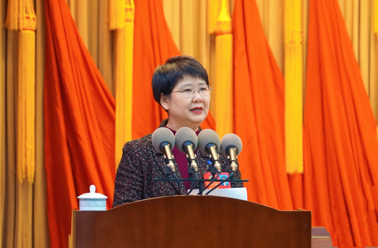 石艳同志代表政协蚌山区第十届委员会常务委员会作工作报告。