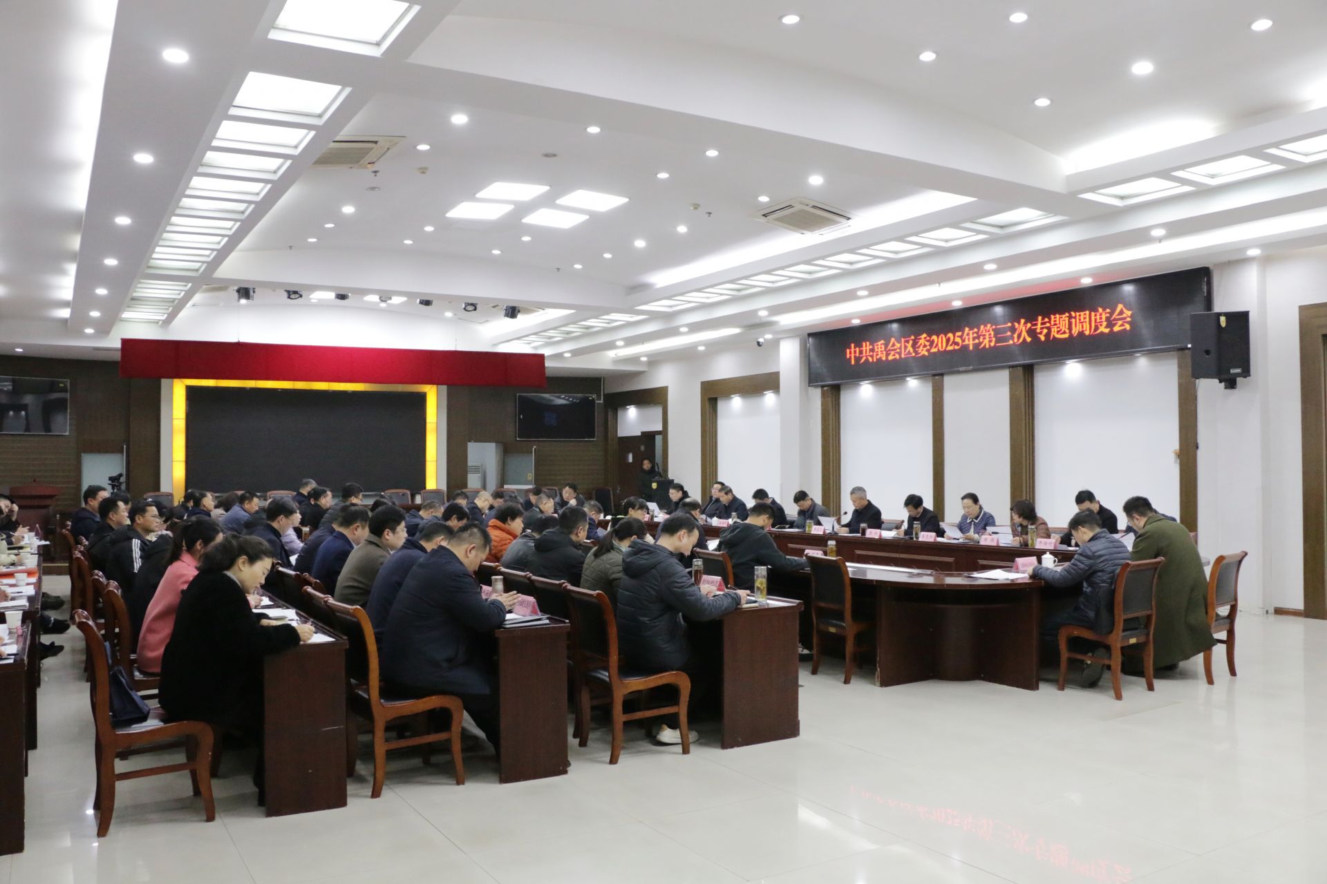 3月8日,禹会区委第三次专题调度会召开。2025年,禹会区委建立每周六专题调度机制,一周一专题调度重点工作。此次会议围绕全区招商引资工作,贯彻落实市委经济运行分析会精神,系统部署全年招商引资重点任务。区委书记王启卫主持会议并讲话。区委副书记、区长张斌作工作部署。四大产业招商小组组长、副组长,招商引资工作一、二、三类单位主要负责同志参会。