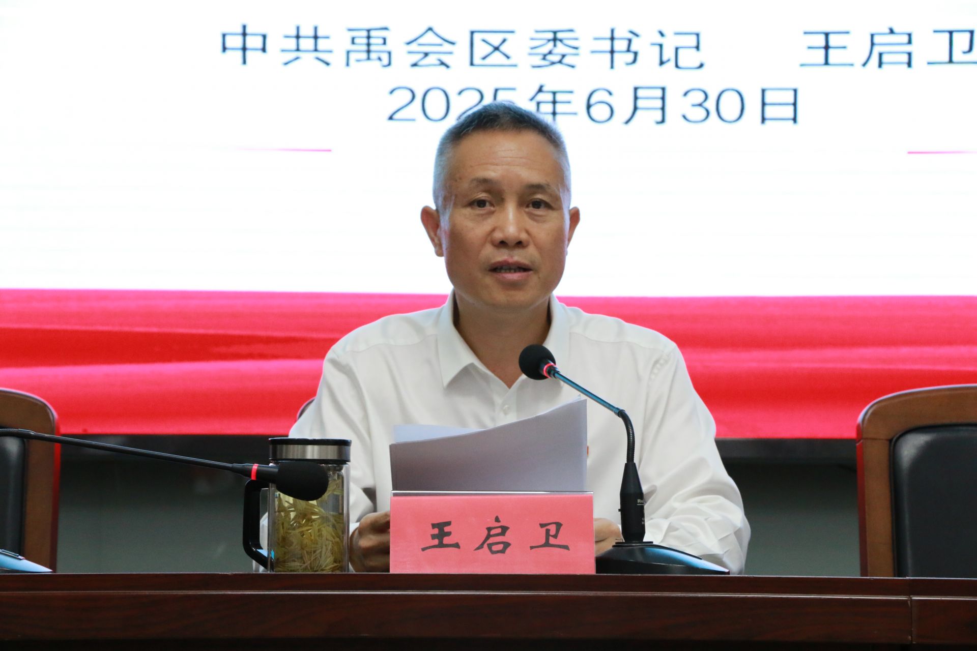 王启卫代表禹会区委,向辛勤奋战在各条战线的共产党员致以节日的问候,向受到表彰的先进集体、先进个人表示热烈的祝贺,围绕“锲而不舍落实中央八项规定精神 以优良作风保障禹会高质量发展”主题作专题党课报告。