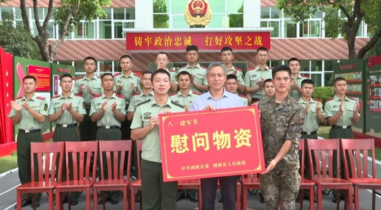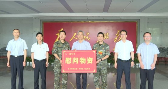 在“八一”建军节来临之际,7月29日上午,固镇县委书记沈明举率队开展“八一”慰问活动,向驻固驻蚌部队官兵、消防救援人员送去节日祝福和慰问物资。县政协主席沈明星,县委副书记、组织部部长朱纪东,县委常委、县人武部政委王小兵,副县长、县公安局局长张怀杰等参加活动。