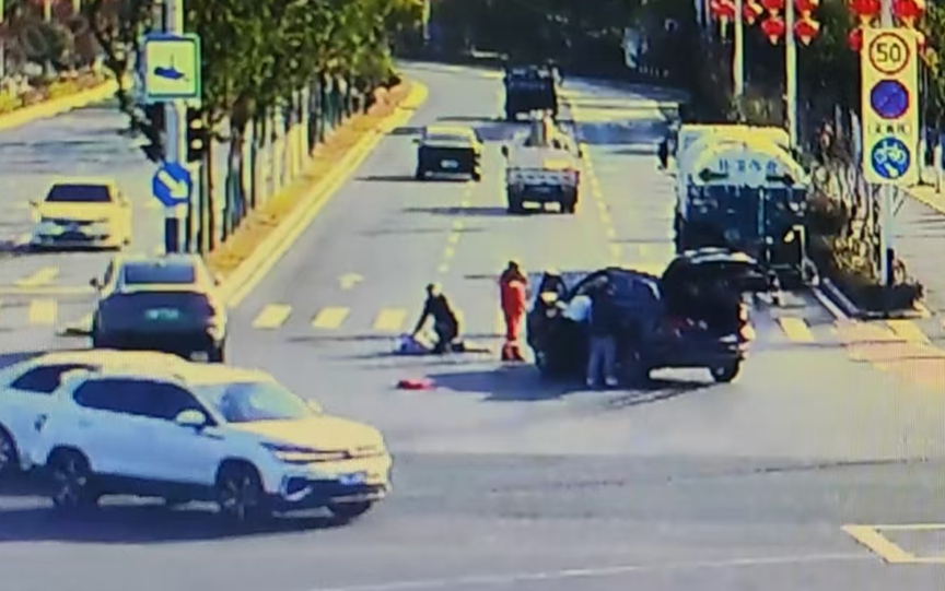 2025年12月14日上午,蚌埠市解放路与宏业路交叉口发生一起交通事故,一名骑电动自行车的女孩被一辆SUV越野车撞倒,躺在车流中无法动弹,情况十分危急。途经现场的徐伟,第一时间靠边停车,迅速亮明红十字救护员身份,立即组织现场群众设置警示标志,有效防范二次事故发生。他不顾寒风凛冽,单膝跪地,一边轻声安抚伤者情绪、缓解其恐惧心理,一边专业评估伤者意识、呼吸及脊柱情况,全程规范操作、沉着处置,同时联系伤者父亲、引导救护车快速抵达现场。整个救援过程有条不紊、专业高效,为伤者争取了宝贵的黄金救治时间,赢得了现场交警、医护人员及过往市民的一致称赞。