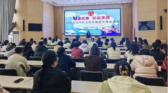 在“三八妇女节”宣传月的温馨氛围中,为深入落实“健康中国・母亲行动”部署,彰显新时代女性自尊、自信、自立、自强的坚韧魅力。3月18日,由经开区妇工委主办,区总工会、团工委协办的“健康优雅・妳最美丽”女性形象提升课堂温情开讲,辖区机关女职工、基层妇女代表、巾帼志愿者们齐聚一堂,在专业指导中解锁美丽密码,在交流互动中凝聚巾帼力量。