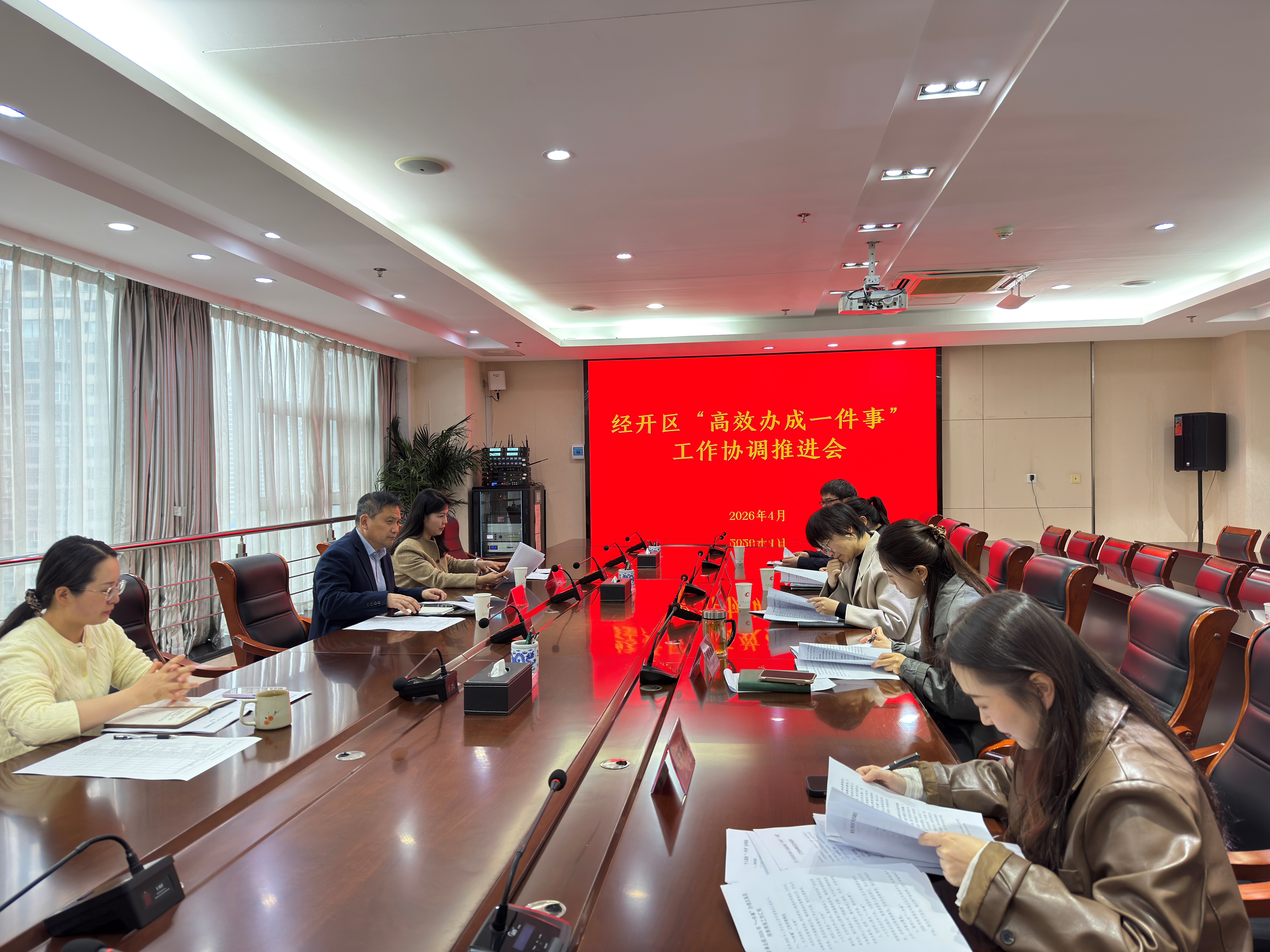 4月22日上午,经开区党工委委员、管委会副主任赵斌主持召开“高效办成一件事”“一表通”工作协调推进会,传达学习省、市“高效办成一件事”“一表通”工作有关会议精神,安排部署近期工作。区各相关单位负责同志、业务科室负责人参加会议。