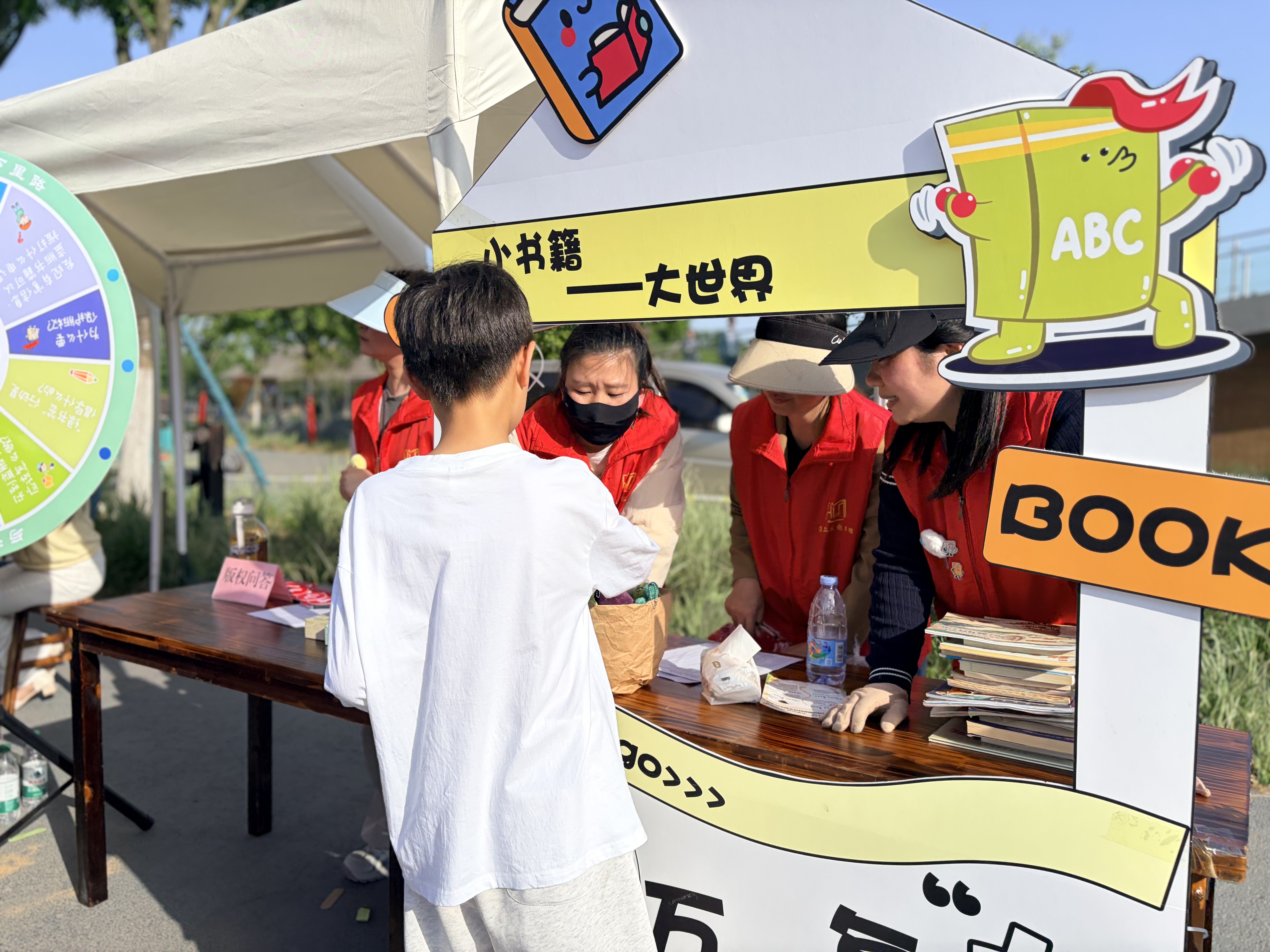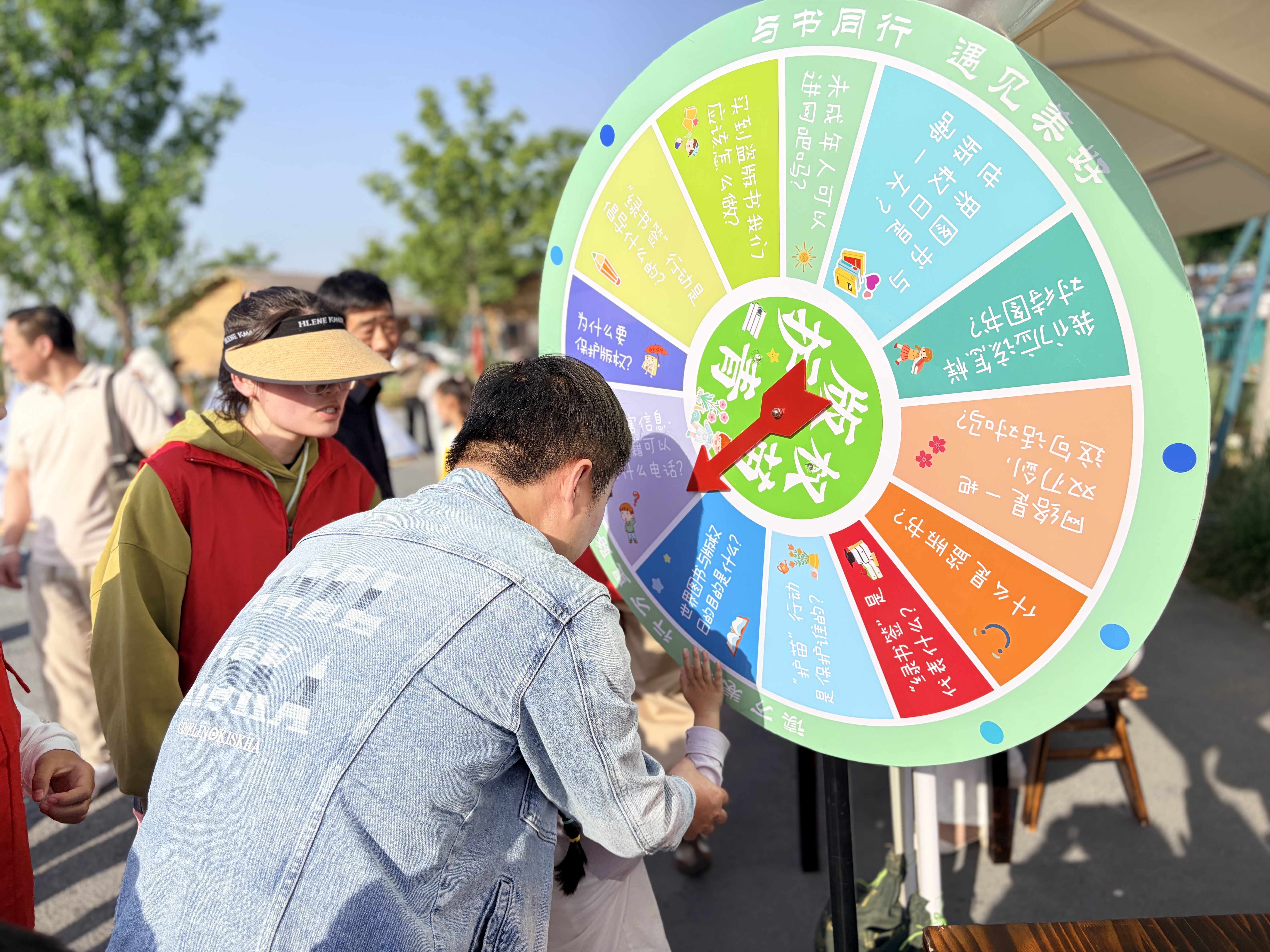 趣味转盘学版权绿书签里护新苗。活动特设版权知识幸运转盘互动环节,转盘设置版权保护、护苗行动、绿书签内涵、世界读书日等趣味考题,孩子们踊跃转动转盘、现场答题,答对即可领取精美小礼品,志愿者同步普及盗版图书辨别方法、有害出版物危害,在趣味游戏中轻松掌握版权常识、读懂“绿书签”意义,自觉树立正版阅读、远离有害出版物的意识。