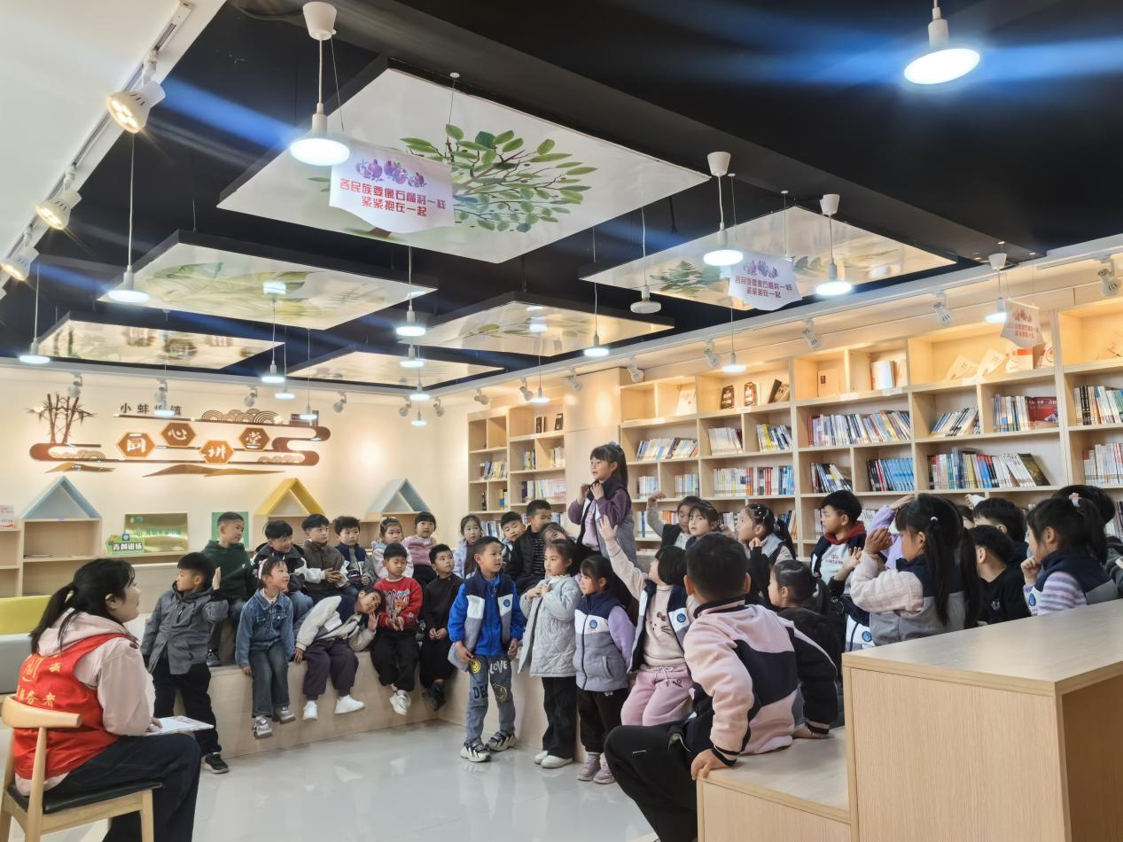 活动现场书香弥漫,孩子们在志愿者的引导下,或围坐在一起聆听精彩故事,或手捧绘本沉浸于书海世界。在互动环节,孩子们踊跃举手分享读书心得,现场气氛热烈欢快。在自由阅读区,孩子们拿着自己制作的手工花朵书签,兴致勃勃地在书架间穿梭,挑选心仪的读物。此外,社区还精心挑选了涵盖传统文化、科普知识等类别的优质书籍,并设置“亲子共读”“好书推荐”等互动板块,为活动增添了浓厚的趣味性与互动性。