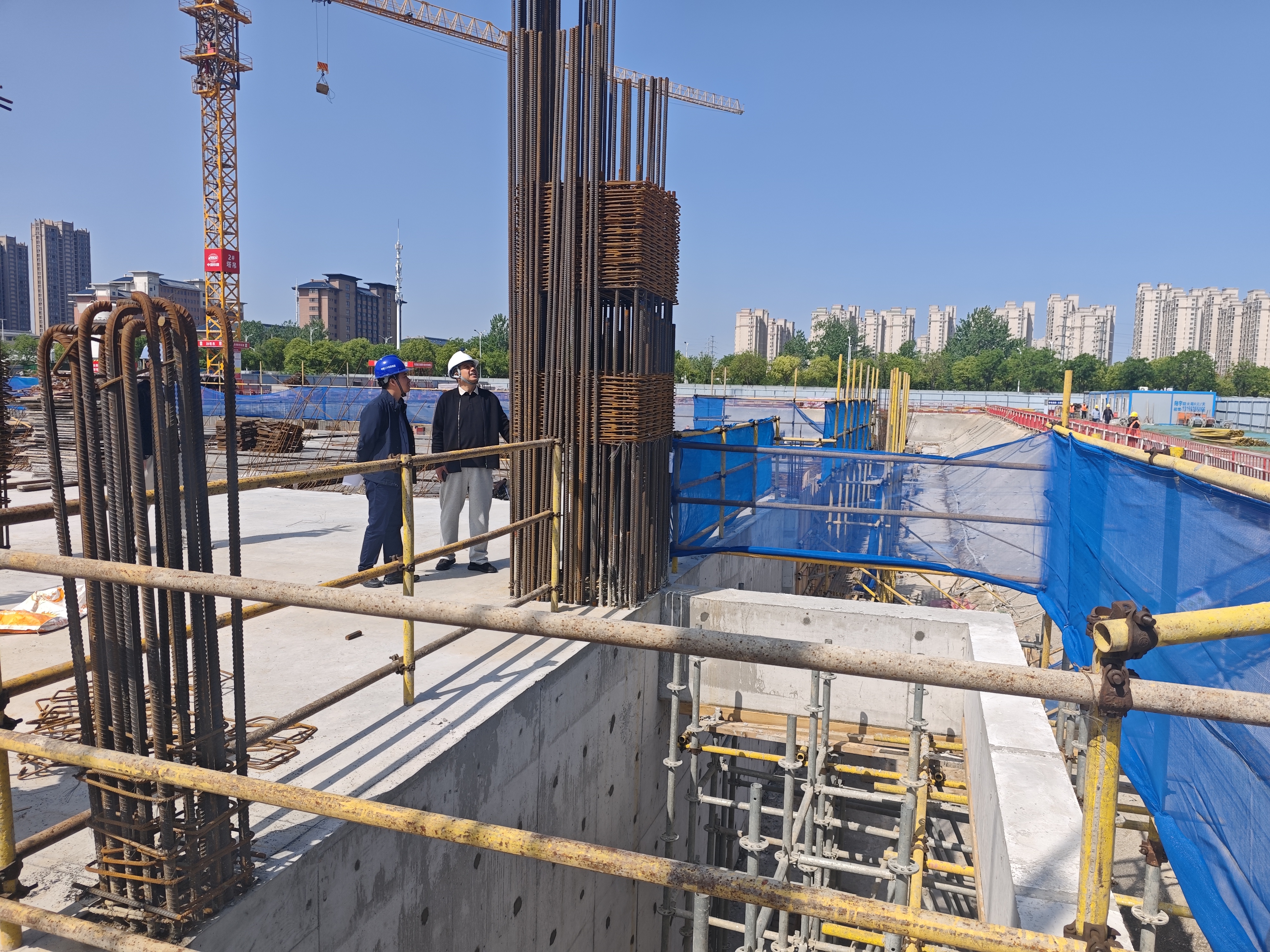 淮上区新材料产业园EPC项目现场同样忙碌有序。施工区域道路全部硬化,裸土用密目网严实覆盖;安全通道两侧,警示牌、风险分布图一目了然。工人们头戴安全帽,高空作业系牢安全带,脚手架搭设规范。“每周安全隐患自查、关键部位天天盯。”项目安全员翻开巡查记录本,上面密密麻麻记录着每天的检查情况。