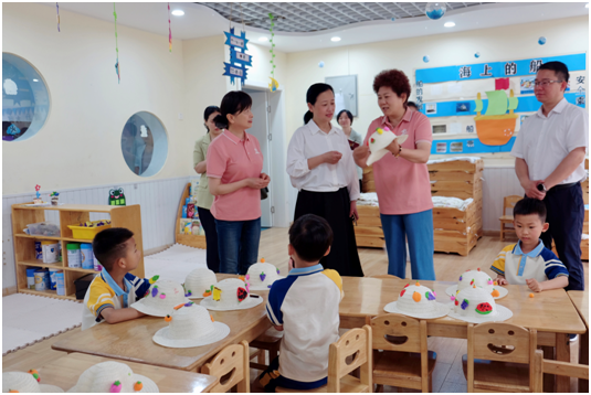 在张公山幼教集团理想城分园,张斌一边听取园区负责人的介绍,详细了解幼儿园办学理念、开园来招生办学及教师配置情况,一边走访观赏幼儿正在进行的各类趣味活动,感受园内满是欢声笑语的童趣,并为幼儿赠送礼物表示节日慰问。